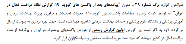 گزاره برگ شماره ۳۹ - پیامدهای بعد از واکسن های کوید ۱۹: گزارش نظام مراقبت فعال در ایران ۱۱ مرداد ۱۴۰۰ | ۱۲:۳۷ کد : ۶۷۹۰ اخبار اسلایدشو ارسال به دیگران نام شما ایمیل شما ایمیل دریافتکننده ارسال انصراف تعداد بازدید:۵۱۶