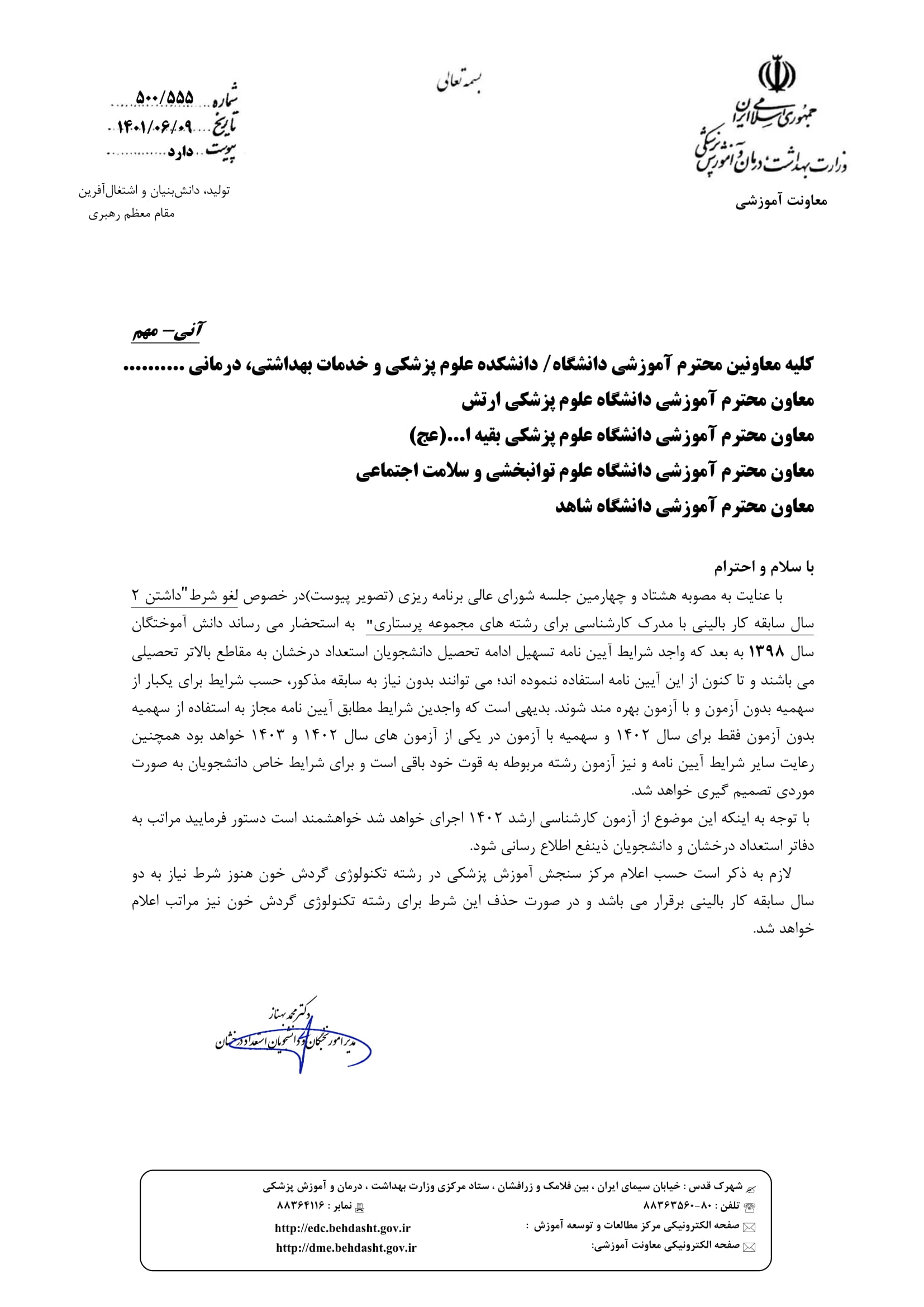 شرکت دانشجویان تعهدی استعداد درخشان در آزمون پذیرش دستیار تخصصی