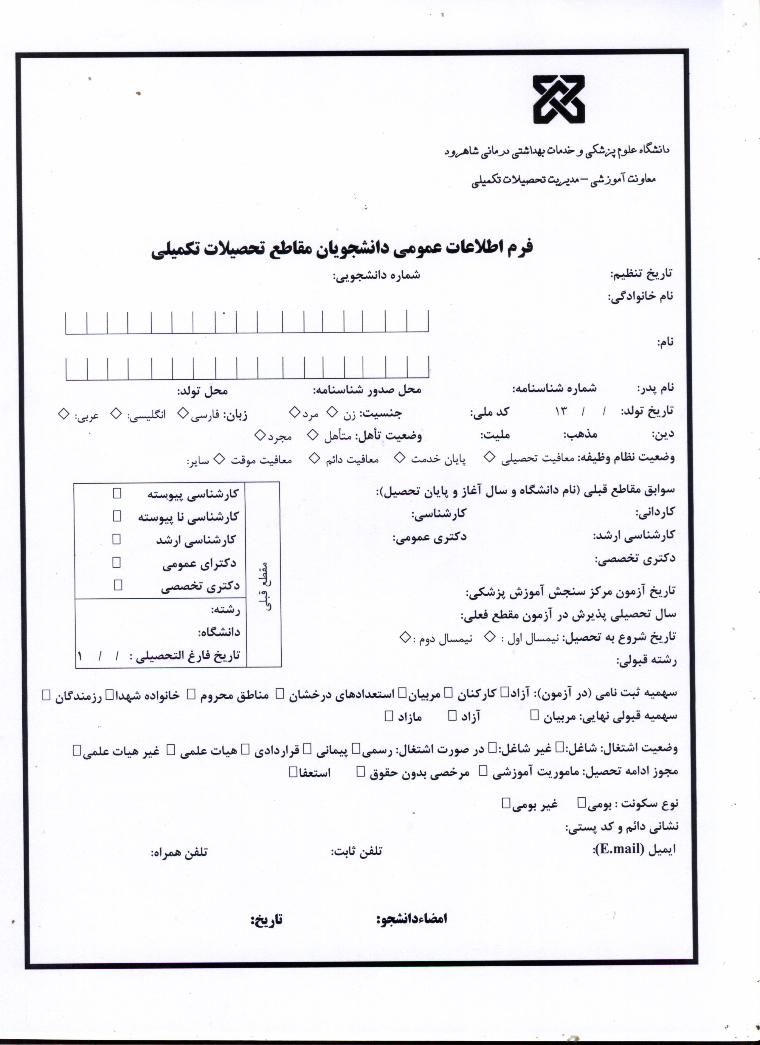 فرم گزینش دانشجو |