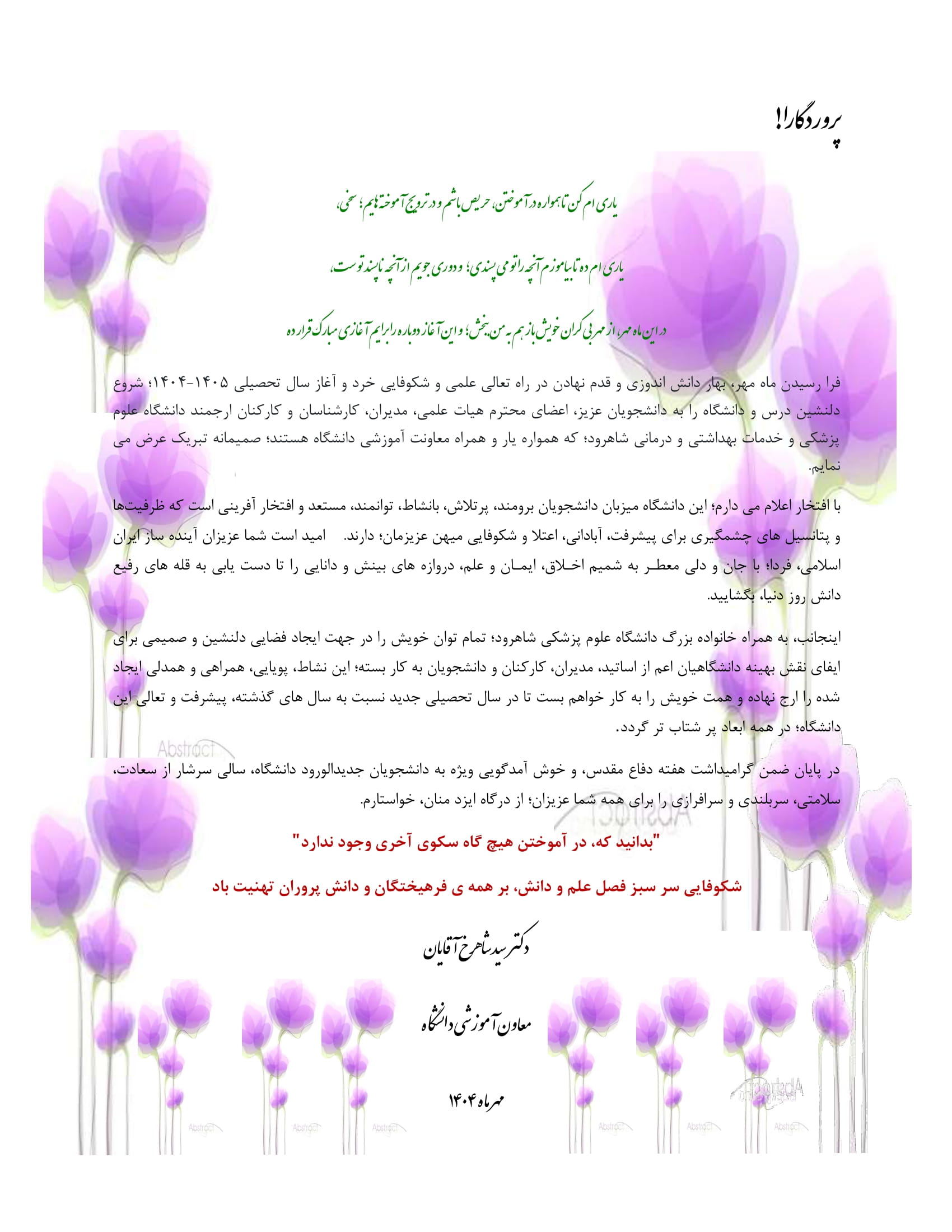 پیام تبریک معاون آموزشی دانشگاه به مناسبت شروع سال تحصیلی جدید پیام تبریک معاون آموزشی دانشگاه به مناسبت شروع سال تحصیلی جدید ۰۵ مهر ۱۴۰۴ | ۰۹:۵۷ کد : ۲۱۳۶۷ اخبار ارسال به دیگران نام شما ایمیل شما ایمیل دریافتکننده ارسال انصراف تعداد بازدید:۵۵