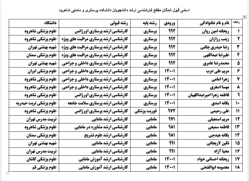 اسامی پذیرفته شدگان در مقطع کارشناسی ارشد دانشجویان دانشکده پرستاری و مامایی شاهرود ۲۰ مهر ۱۴۰۴ | ۰۹:۴۱ کد : ۲۱۵۶۴ اخبار ارسال به دیگران نام شما ایمیل شما ایمیل دریافتکننده ارسال انصراف تعداد بازدید:۲۸