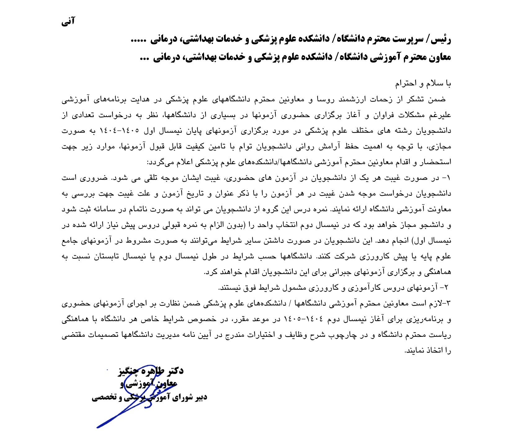 در خصوص آزمونهای پایان نیمسال اول ۱۴۰۵-۱۴۰۴ در خصوص آزمونهای پایان نیمسال اول ۱۴۰۵-۱۴۰۴ ۱۲ بهمن ۱۴۰۴ | ۱۰:۱۹ کد : ۲۲۹۰۷ اخبار ارسال به دیگران نام شما ایمیل شما ایمیل دریافتکننده ارسال انصراف تعداد بازدید:۱۳