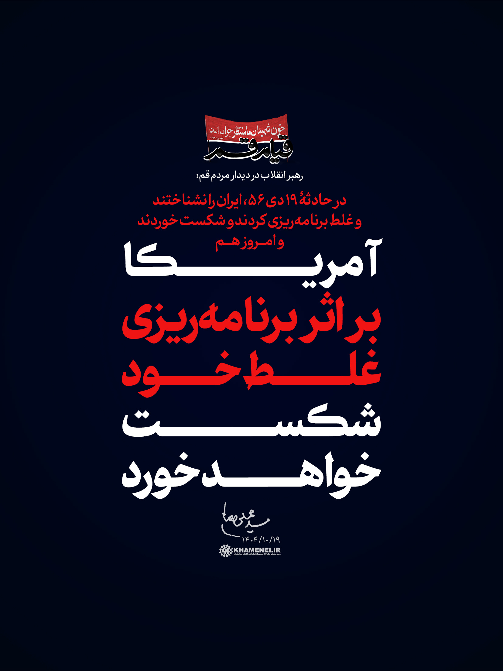 فرازی از سخنان مقام معظم رهبری در دیدار با مردم قم ( ۱۹ دی ماه ۱۴۰۴) ۲۰ دی ۱۴۰۴ | ۰۹:۳۵ اسلاید شو ارسال به دیگران نام شما ایمیل شما ایمیل دریافتکننده ارسال انصراف