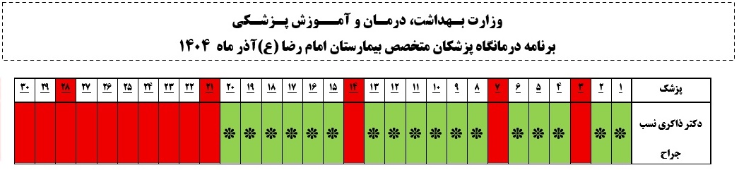 متخصص جراحی عمومی ارسال به دیگران نام شما ایمیل شما ایمیل دریافتکننده ارسال انصراف برنامه کاری پزشک: دکتر ذاکری نسب * حضور پزشک جهت دریافت نوبت اینجا کلیک کنید.