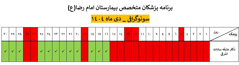 سونوگرافی ارسال به دیگران نام شما ایمیل شما ایمیل دریافتکننده ارسال انصراف سونوگرافی دکتر فرناز اردیانی ü حضورپزشک دکتر عارفه سادات اشرفی ü حضورپزشک جهت دریافت نوبت اینجا کلیک کنید.