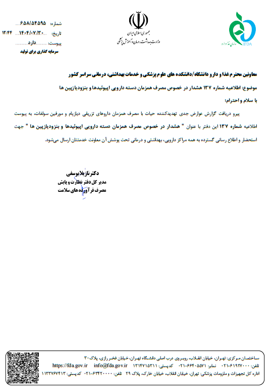 اطلاعیه تخصصی دفتر نظارت و پایش مصرف فرآورده های سلامت در خصوص مصرف همزمان اپیوئید و بنزودیازپین
