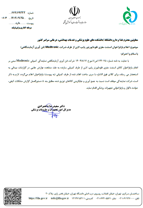 باز فراخوان استنت مغزی فلو دایورتر پایپ لاین مدترونیک شرکت فن آوری آزمایشگاهی تعداد بازدید:۱۱ ارسال به دیگران نام شما ایمیل شما ایمیل دریافتکننده ارسال انصراف