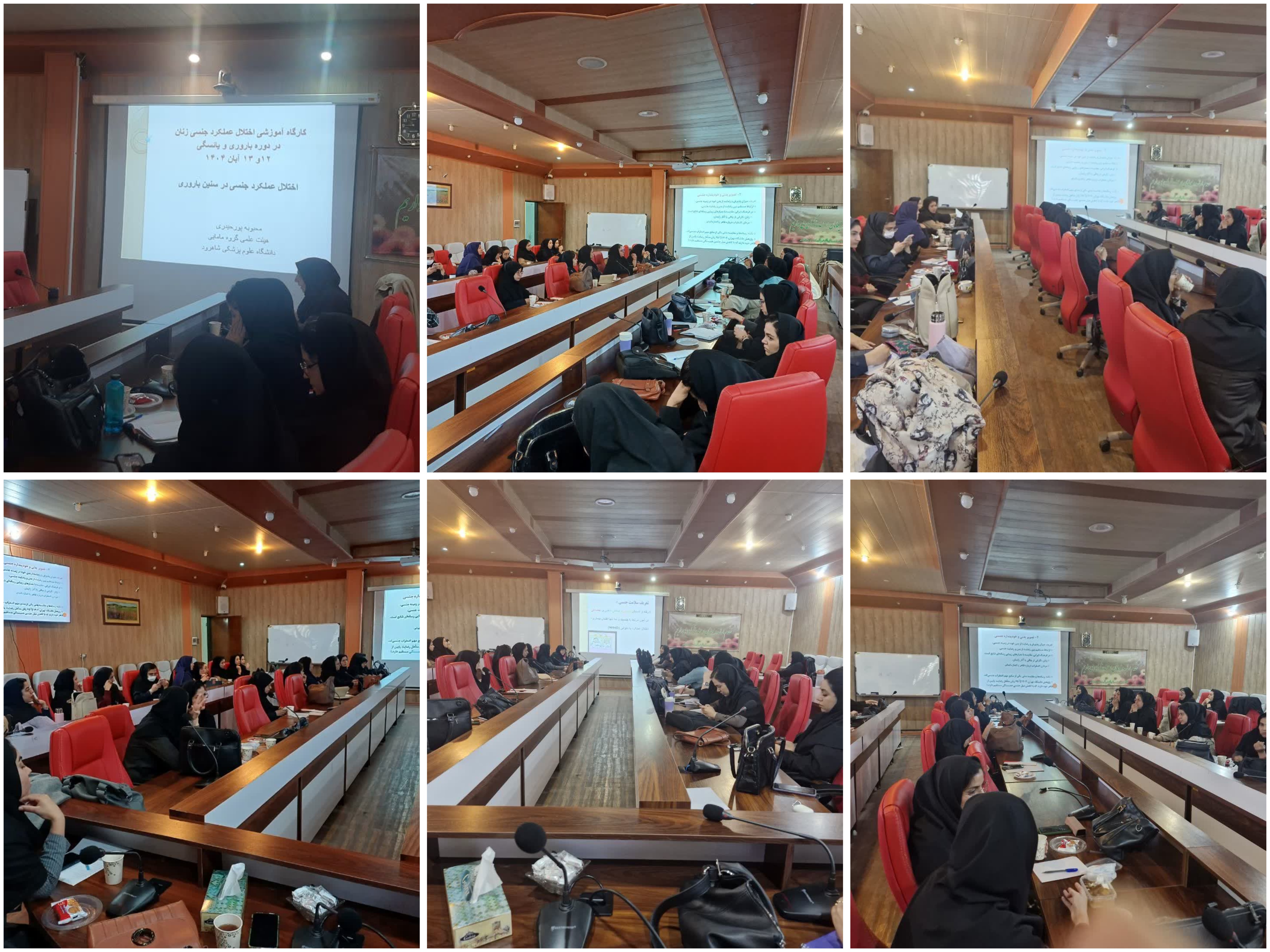 در ابتدای کارگاه خانم حسینی کارشناس مسئول سلامت میانسالان در خصوص اهمیت برگزاری کارگاه و انتظارات اجرایی از مراکز در ارائه خدمت به جمعیت تحت پوشش توضیحاتی را بیان نمودند ودر ادامه خانم پورحیدری عضو هیئت علمی دانشگاه در خصوص مبانی فیزیولوژی جنسی ،عوامل اجتماعی، رفاهی،فرهنگی،اقتصادی و همچنین مشکلات شایع در این دوره و الگوریتم های درمانی جهت حاضرین در جلسه به صورت تئوری و بیان موارد مشاوره ای توضیحات لازم را بیان نمودند.