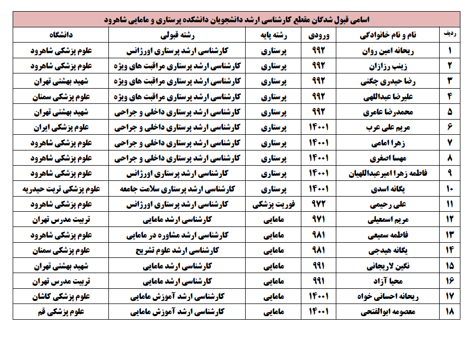 اسامی قبول شدگان مقطع کارشناسی ارشد دانشجویان دانشکده پرستاری و مامایی شاهرود ۱۶ مهر ۱۴۰۴ | ۱۴:۱۲ کد : ۲۱۵۳۷ اطلاعیه ها ارسال به دیگران نام شما ایمیل شما ایمیل دریافتکننده ارسال انصراف تعداد بازدید:۱۸۵ عرض تبریک و با آرزوی موفقیت برای دانشجویان گرامی
