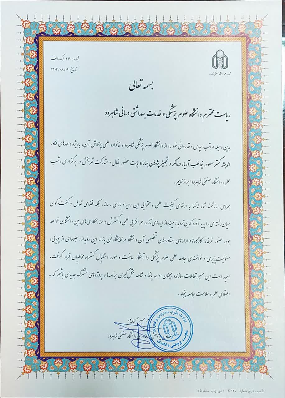 تقدیر وتشکر دانشگاه صنعتی شاهرود از حضور فعال دانشگاه علوم پزشکی در رویداد ملی "شب علم"