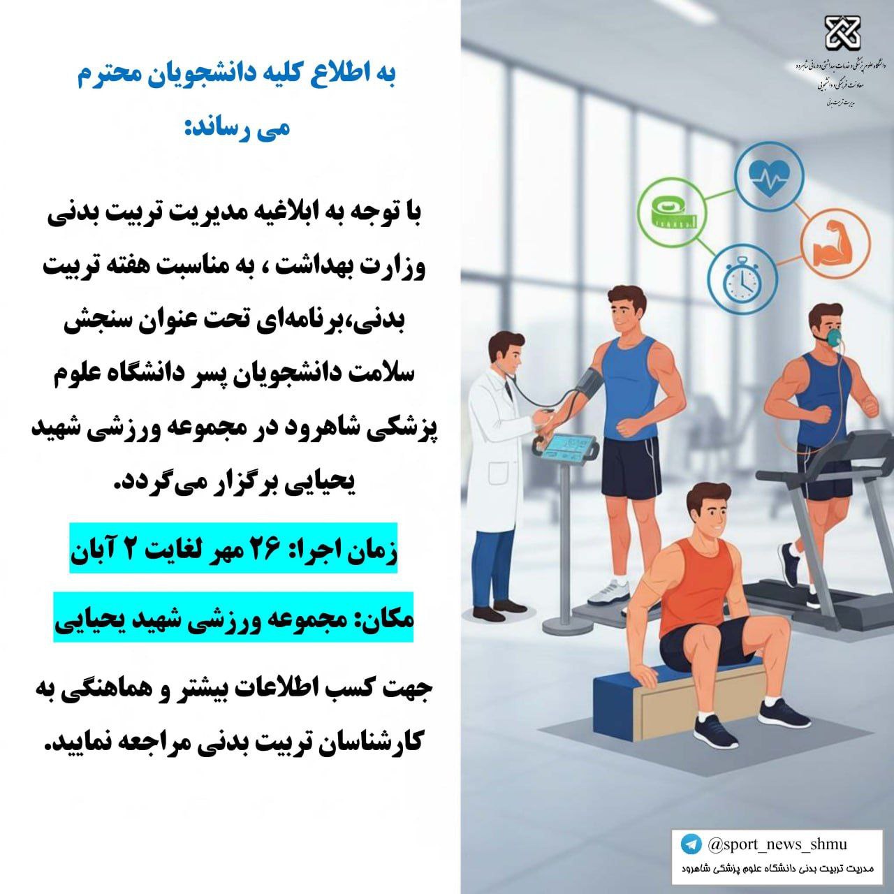 اطلاعیهطرحسنجشسلامت دانشجویان پسر در مجموعهورزشی شهید یحیائی به مناسبت هفته تربیت بدنی ۰۳ دی ۱۴۰۴ | ۱۱:۴۱ کد : ۲۲۵۰۴ تربیت بدنی ارسال به دیگران نام شما ایمیل شما ایمیل دریافتکننده ارسال انصراف تعداد بازدید:۱