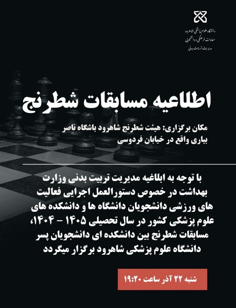 برگزاریمسابقاتشطرنج دانشجویان پسر ۰۳ دی ۱۴۰۴ | ۱۲:۱۵ کد : ۲۲۵۱۷ تربیت بدنی ارسال به دیگران نام شما ایمیل شما ایمیل دریافتکننده ارسال انصراف تعداد بازدید:۱