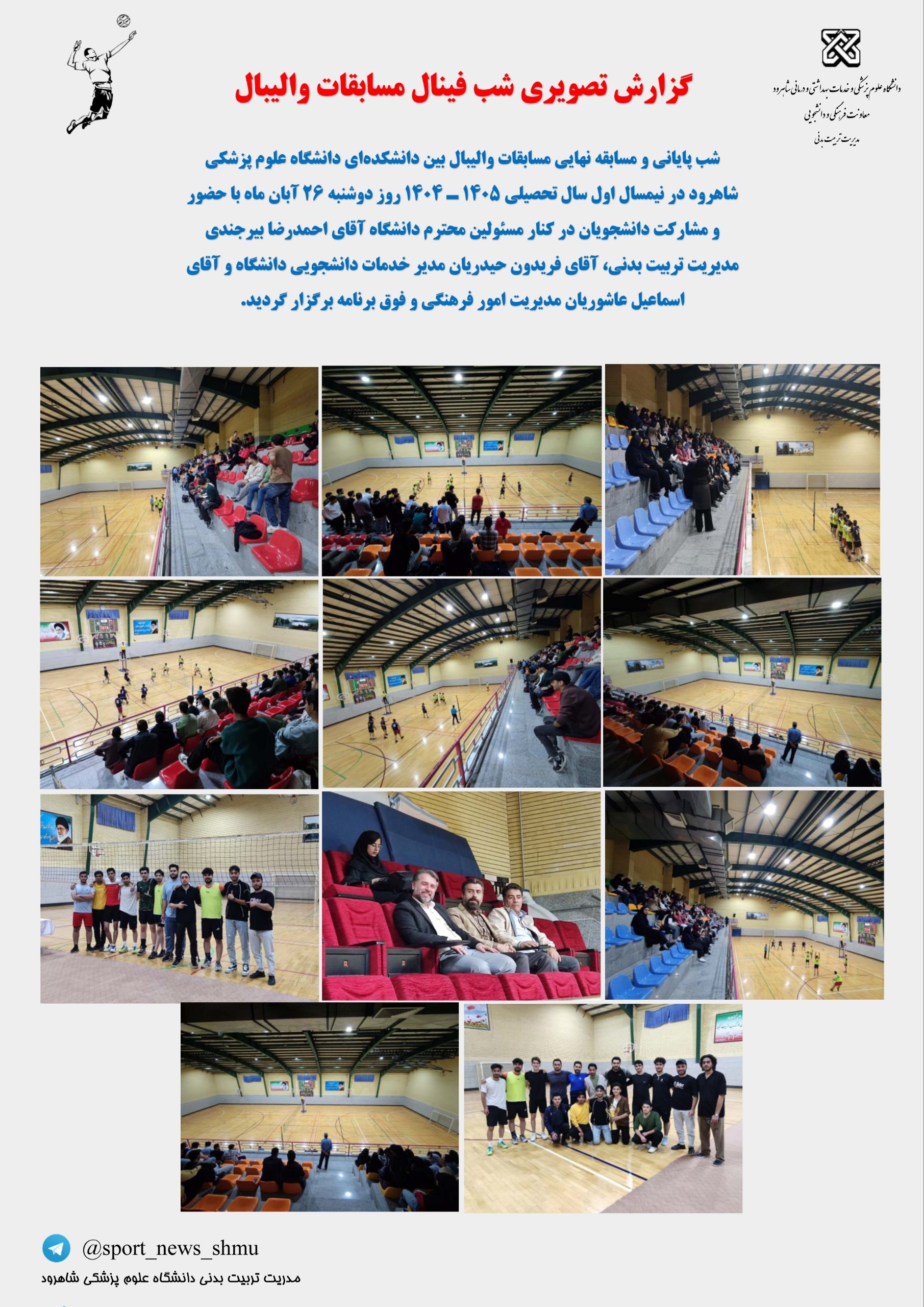 گزارش شب فینال مسابقات والیبال دانشجویان پسذ درنیمسال اول تحصیلی ۱۴۰۴-۱۴۰۵ ۰۳ دی ۱۴۰۴ | ۱۳:۲۹ کد : ۲۲۵۴۲ تربیت بدنی ارسال به دیگران نام شما ایمیل شما ایمیل دریافتکننده ارسال انصراف تعداد بازدید:۲