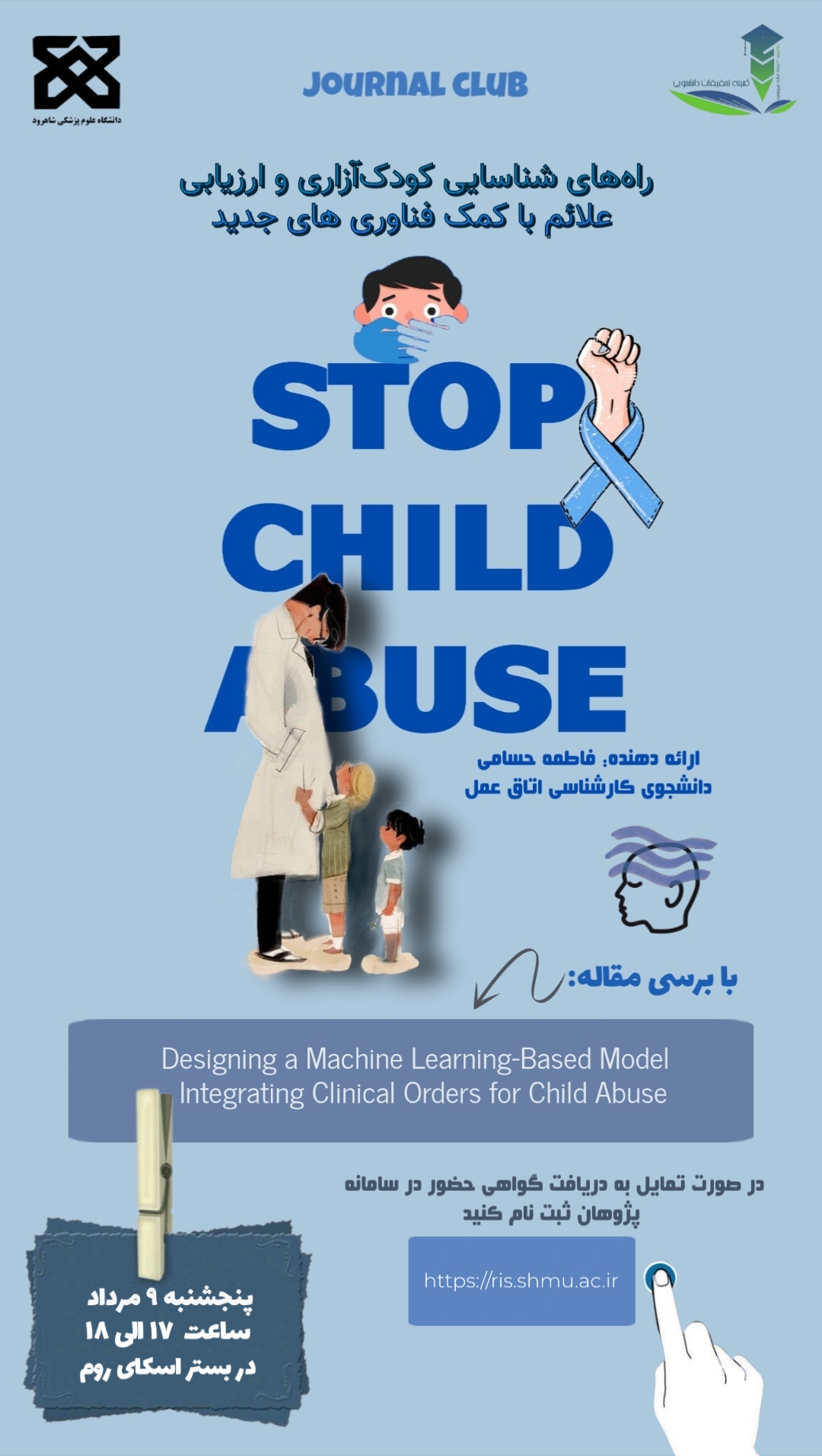 برگزاری ژورنال کلاب راههای شناسایی کودک آزاری و ارزیابی علائم با کمک فناوری های جدید - ۵ مردادماه ۱۴۰۴