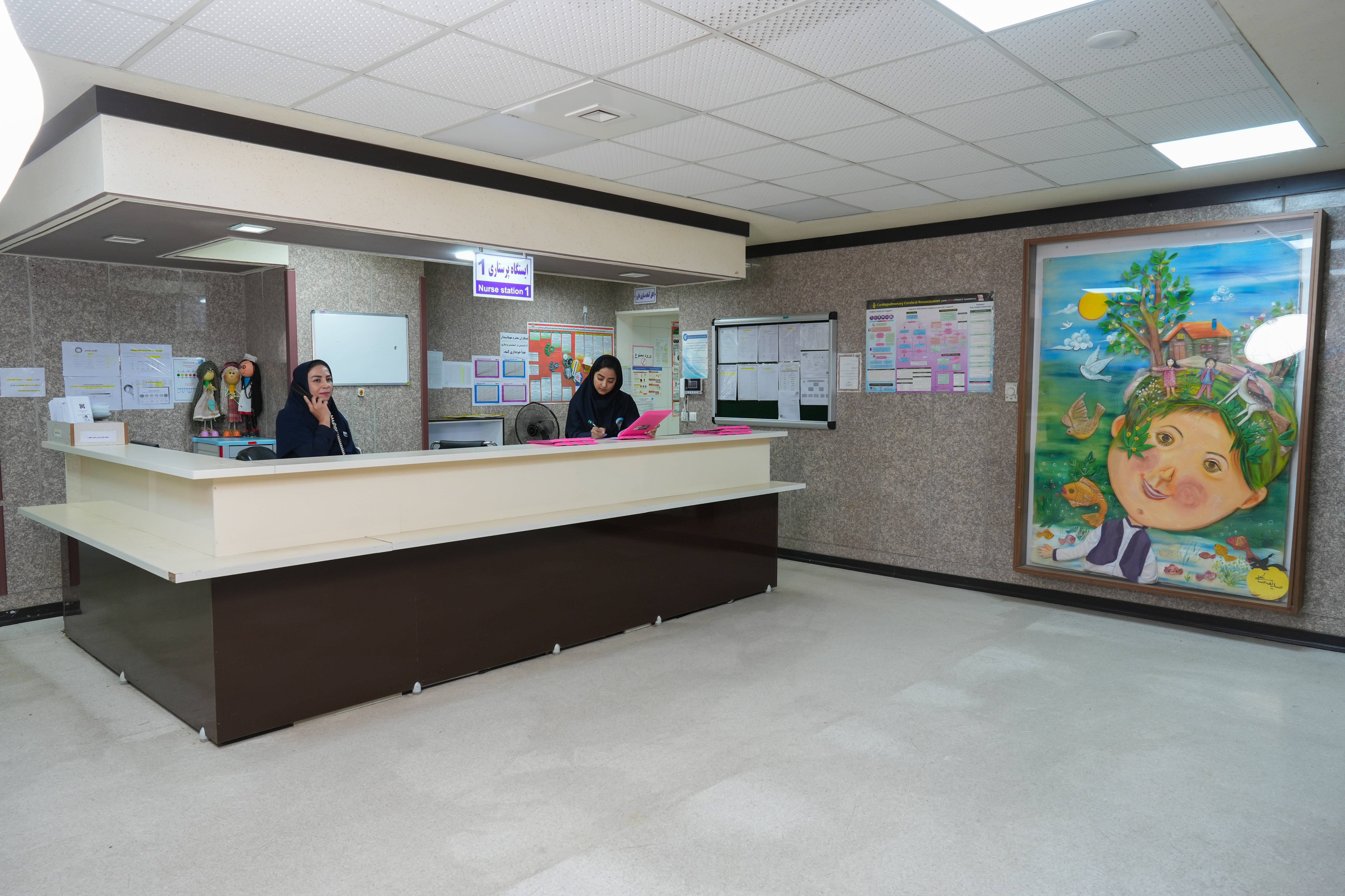 بخش اطفال یکی از مهمترین و حساسترین بخشهای بیمارستانها است و باید محیطی بسیار امن برای ارائه خدمات درمانی مناسب به کودکان بیمار باشد. بخش اطفال در طبقه همکف بیمارستان واقع شده و دارای ۴۶ تخت با تجهیزات پزشکی کامل و پیشرفته از جمله الکتروشوک، مانیتورینگ، پالس اکسیمتری، پمپ سرم، پمپ سرنگ، الکتروکاردیوگراف، نبولایزر دارویی، گرم کننده، بخور گرم و سرد و غیره میباشد. هر تخت شامل تمام لوازم جانبی کودک و یک کاناپه تختخواب شو برای راحتی مادر در طول بستری کودک است. تمام اتاقهای بستری دارای امکانات رفاهی از جمله تلویزیون، یخچال، سیستم تلفن، صندلی قابل حمل و سایر تجهیزات لازم هستند.