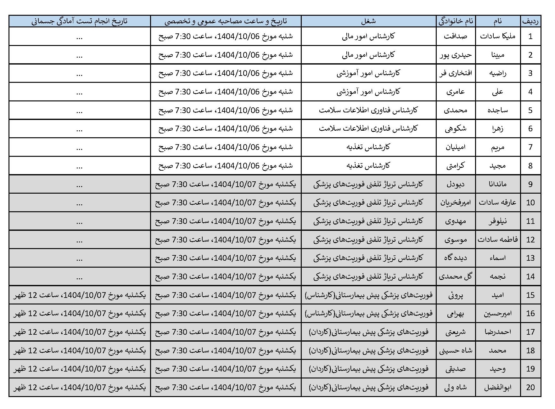 اطلاعیه زمان و مکان مصاحبه آزمون استخدام پیمانی تابستان ۱۴۰۴