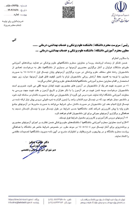 اطلاعیه در خصوص آزمون پایان ترم نیمسال اول ۱۴۰۴-۱۴۰۵ ۱۲ بهمن ۱۴۰۴ | ۱۱:۳۸ کد : ۲۲۹۱۲ فرمها اخبار ارسال به دیگران نام شما ایمیل شما ایمیل دریافتکننده ارسال انصراف تعداد بازدید:۸۲