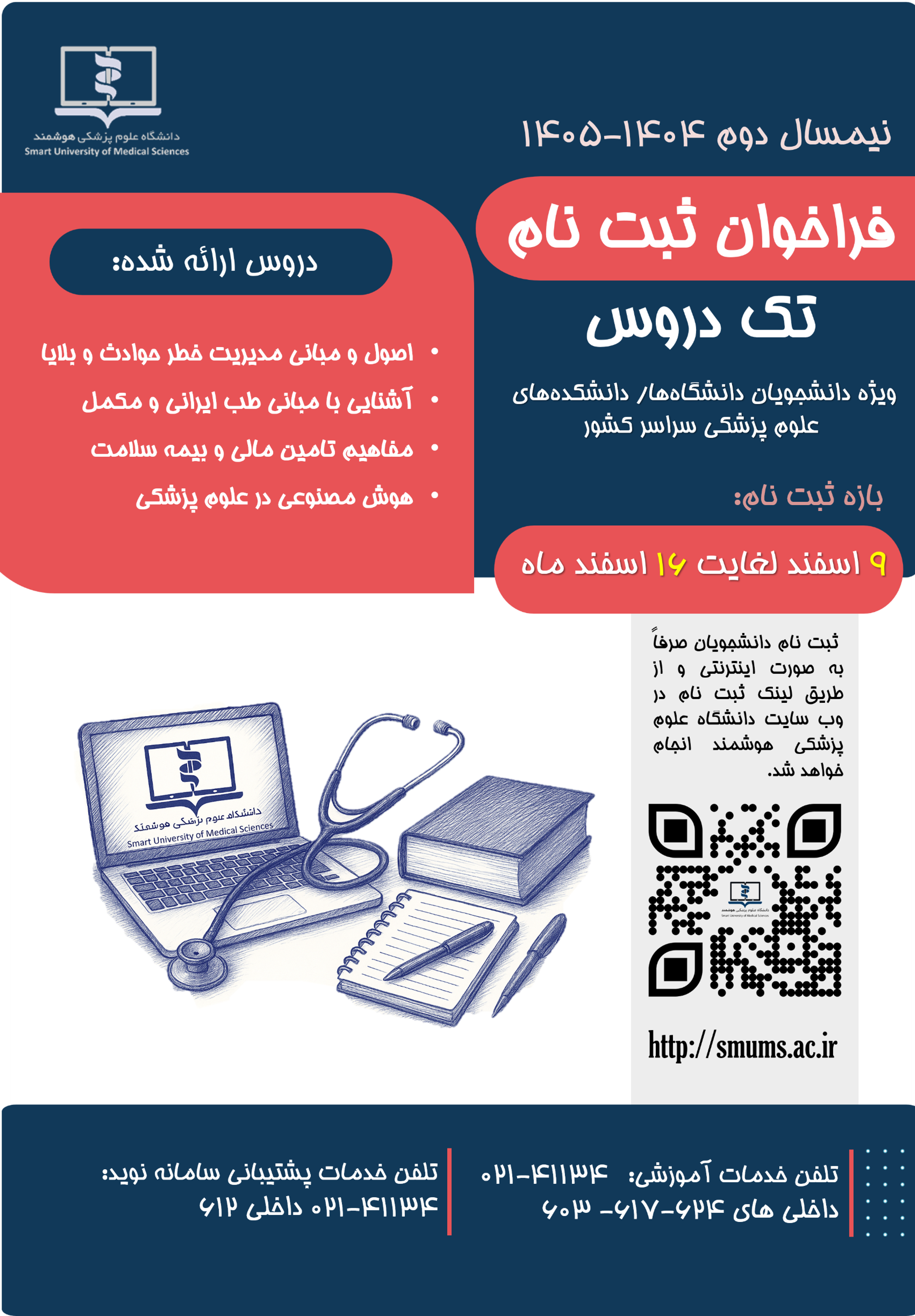فراخوان ثبت نام تک درس دانشگاه علوم پزشکی هوشمند ۲۸ بهمن ۱۴۰۴ | ۰۹:۴۰ کد : ۲۳۰۴۵ فرمها اخبار ارسال به دیگران نام شما ایمیل شما ایمیل دریافتکننده ارسال انصراف تعداد بازدید:۶۹